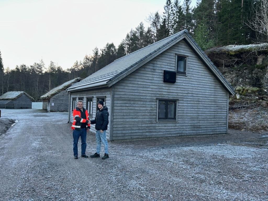 Prosjektleiar Rolf Hatlem og Lars Espeland frå Hyllestad Bygg AS. Hyllestad kommune